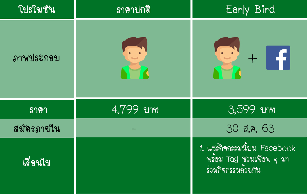 - ด้วยการจัดกลุ่มแบบ Mini Group กลุ่มละไม่เกิน 7 คน เพื่อให้ทุกคนได้มีโอกาสสื่อสารและมีส่วนร่วมในทุก ๆ กิจกรรม