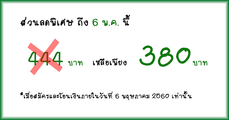 (พิเศษ สมัครและโอนเงินภายในวันที่ 6 พ.ค. 2560 ลดเหลือ 380 บาทเท่านั้น)