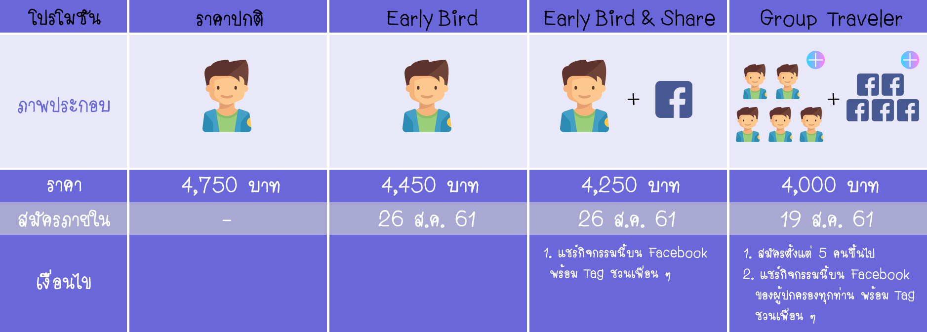 6 – 7 ตุลาคม 2561 (สองวันหนึ่งคืน)