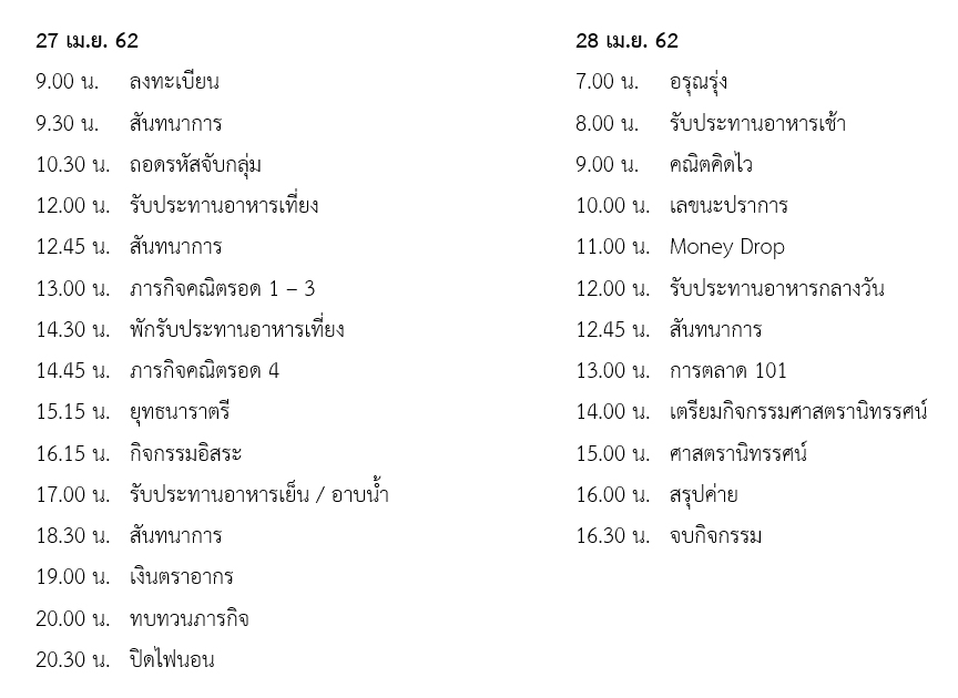 Math Money Camp S, 27 – 28 เมษายน 2562